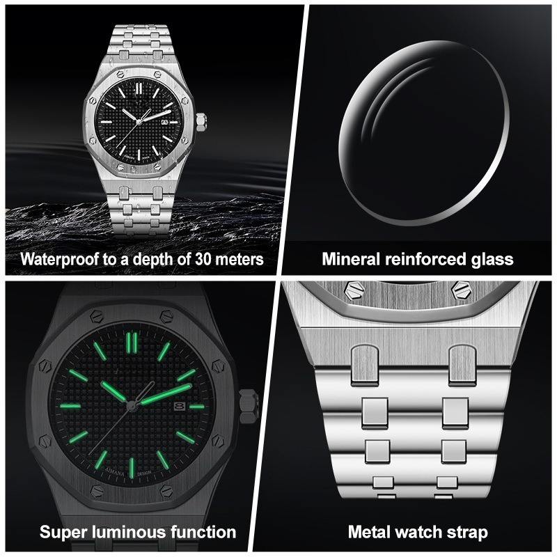 Reloj Mecánico de Alta Gama para Hombre con Esfera Octogonal y Funciones Complejas, Correa de Cuero Suntuosa, Accesorio de Moda para Fiestas