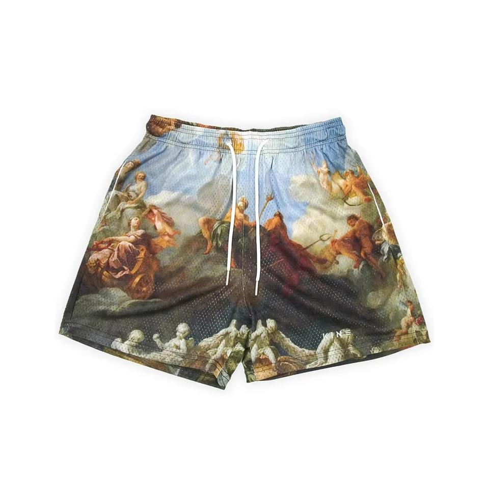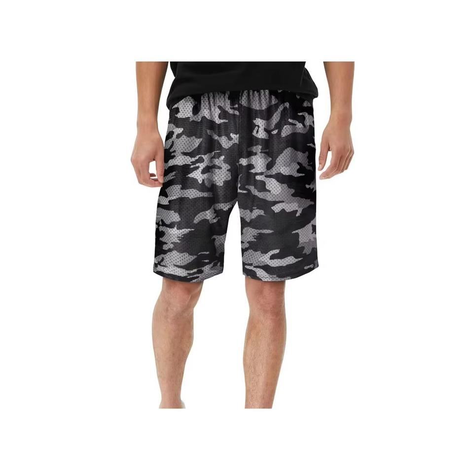 Pantalones cortos de malla de secado rápido de alto rendimiento para hombre con estampado de transferencia por sublimación de patrón sólido para gimnasio y entrenamientos al aire libre