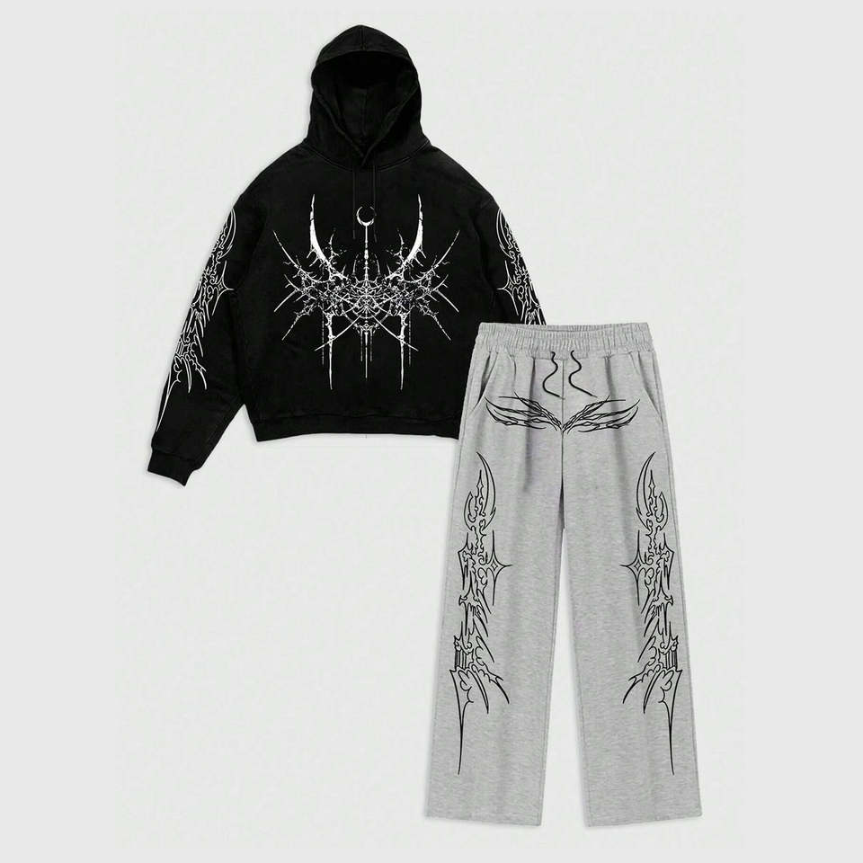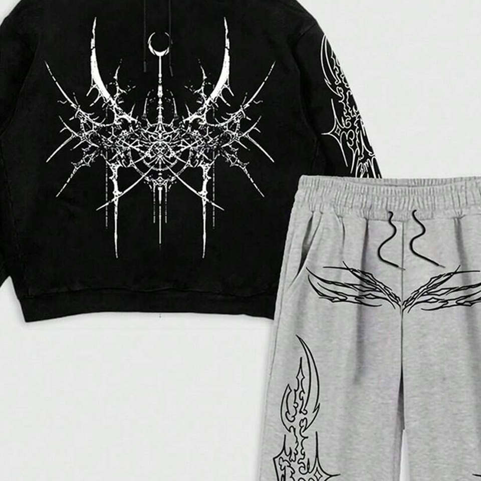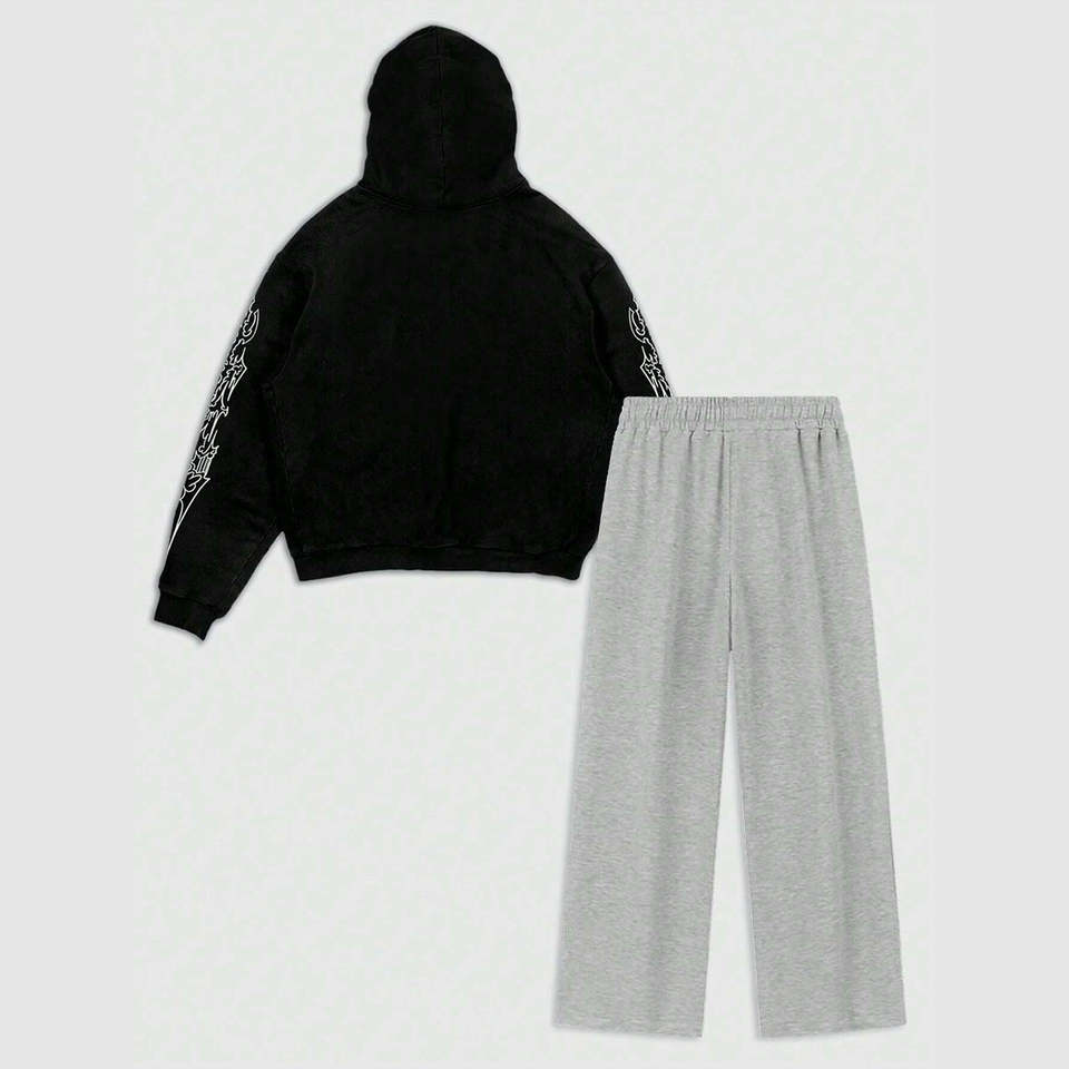 Sudadera y Pantalones de Algodón 100% Transpirables con Serigrafía Personalizada de Alta Calidad para Hombre, Estilo Hip Hop Otoñal, 500gsm, Tendencia Actual