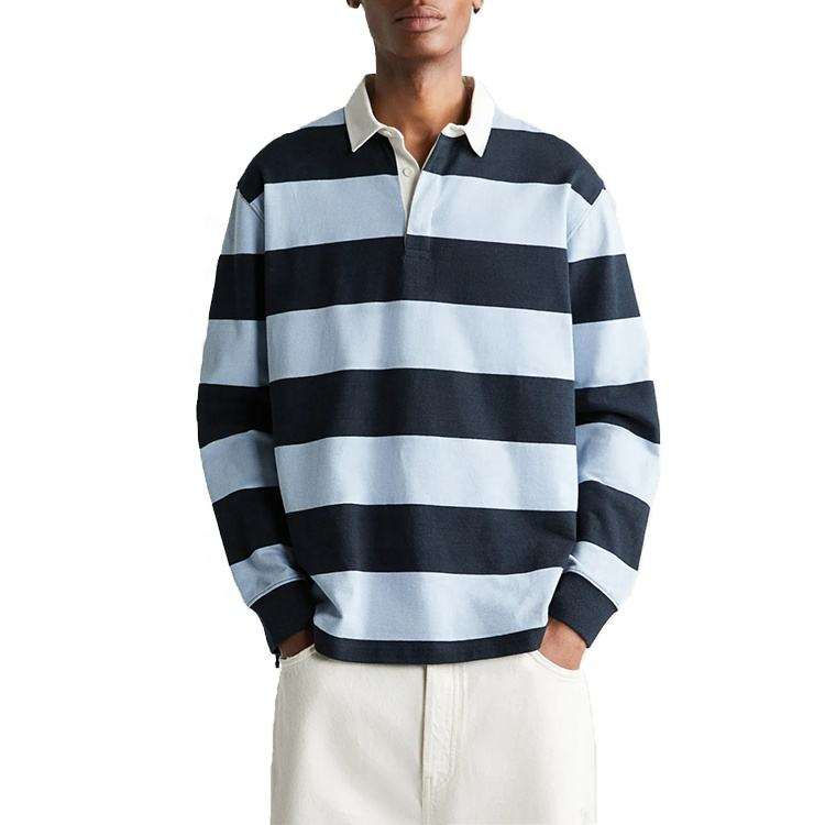 Polo de Alta Calidad para Hombre con Logotipo Personalizado, Polo Transpirable de Rayas Oversize, Polo Casual de Manga Larga de Algodón para Invierno