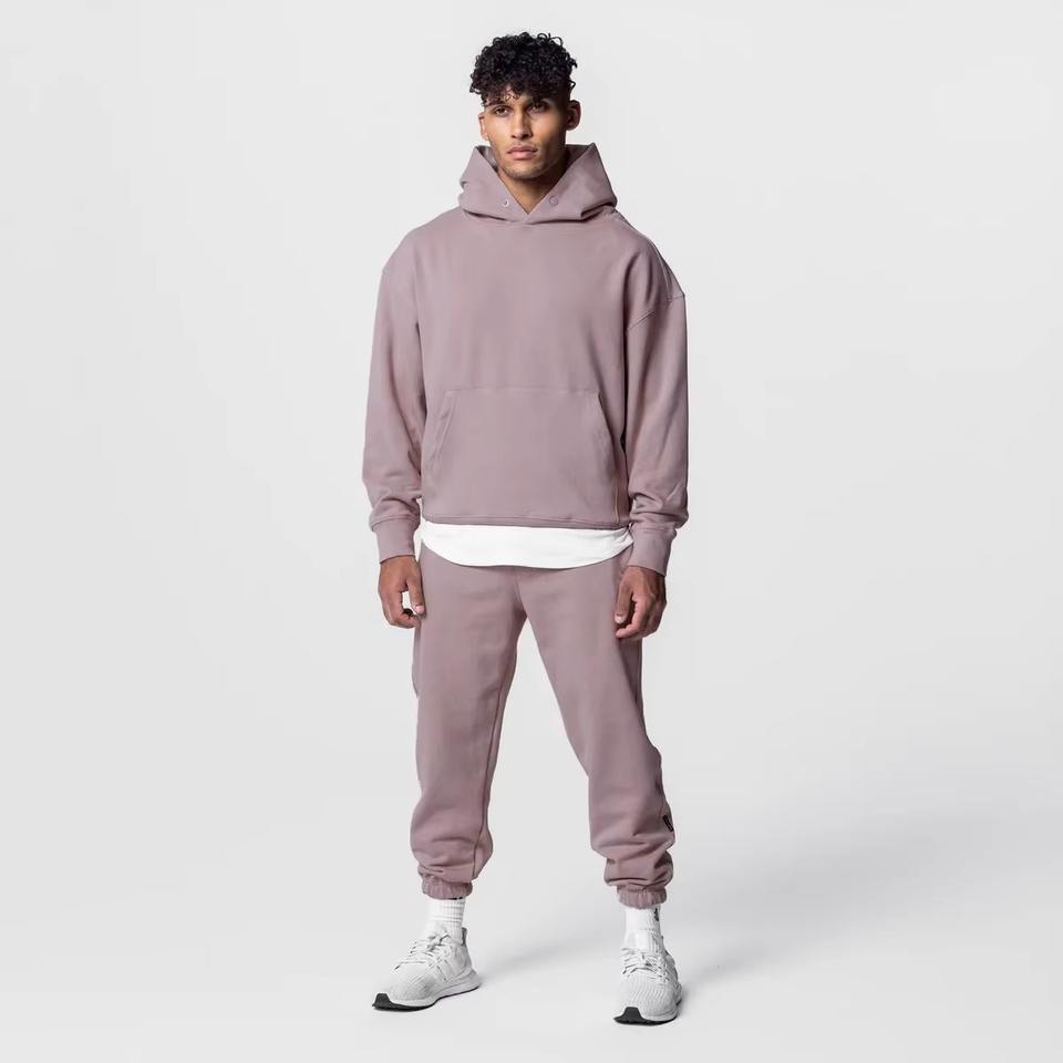 Conjunto de chándal con logotipo personalizado de alta calidad para hombre Sudadera con capucha ajustada y pantalones de chándal con capucha bordada Suministro ODM