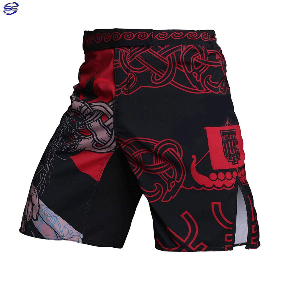 Pantalones cortos de MMA con bordado impreso y logotipo personalizado de alta calidad para hombre, tejido de licra, poliéster, gimnasio, correr, deportes, calle principal en blanco