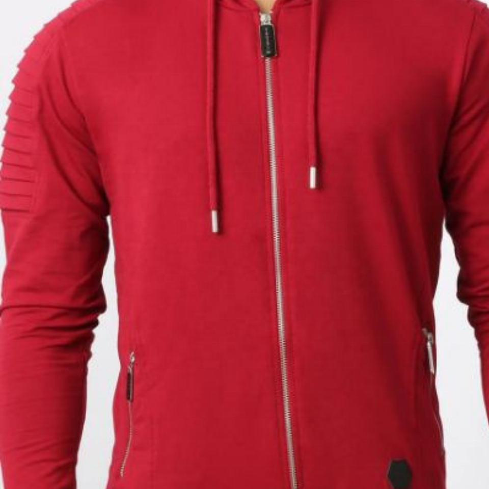 Nombre del producto:Logotipo de bordado personalizado hombres moda Terry francés motorista rojo Sudadera con capucha