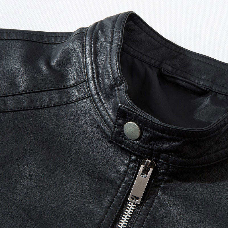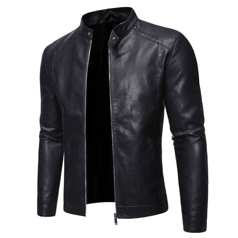 Chaqueta de Cuero Genuino de Alta Calidad para Hombre con Cuello Alto y Logotipo Frontal Personalizable, Estilo Motociclista y Biker, Chaqueta de Invierno Transpirable