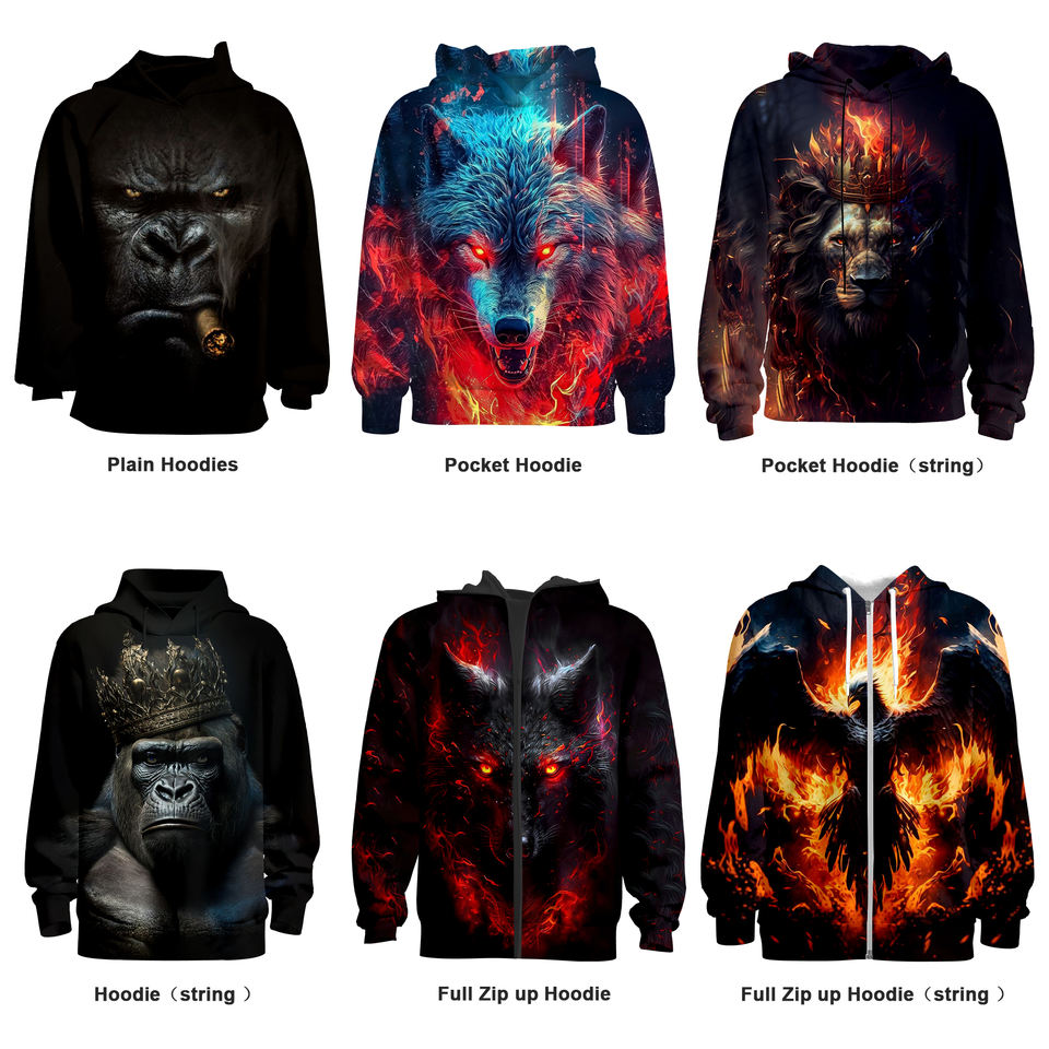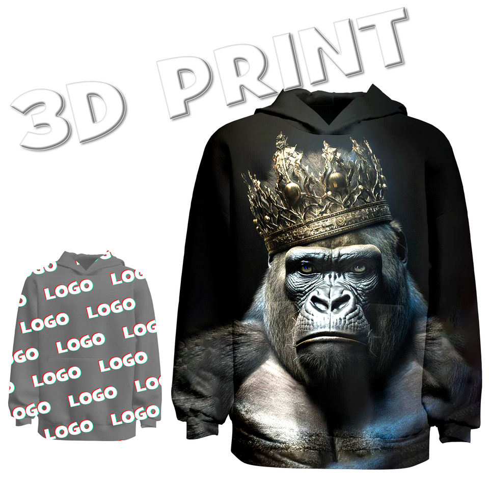 Sudadera con capucha de gran tamaño con cremallera de poliéster/algodón de alta calidad para hombre, sudadera de lana de invierno con gráfico 3D estampado, logotipo personalizado