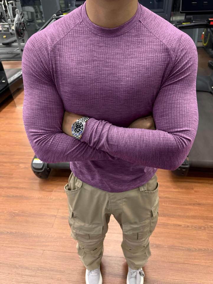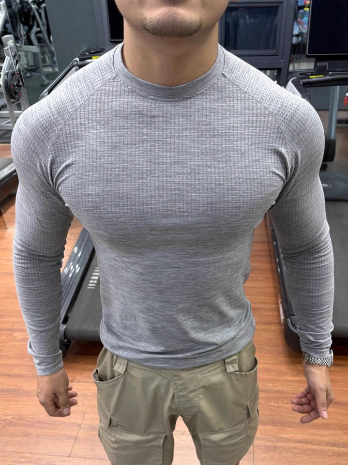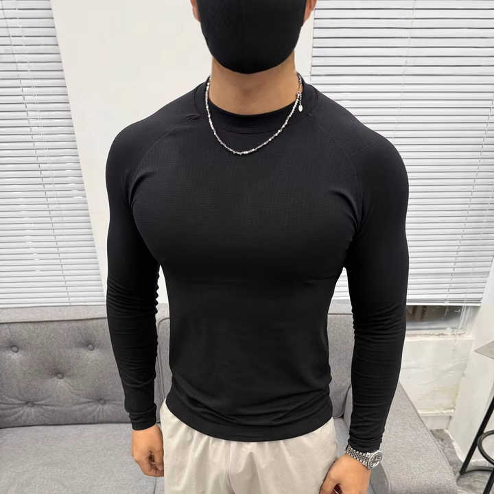 Camiseta Deportiva Americana Informal sin Costuras, de Jacquard, Manga Larga, Ajustada, Transpirable, de Secado Rápido y Alta Elasticidad para Hombre
