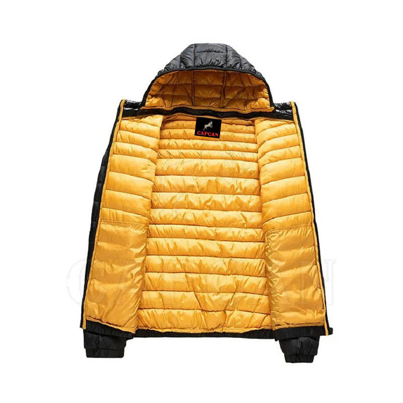 Chaqueta acolchada ultraligera de invierno de alta calidad para hombre, tela de lana larga y cálida con cuello levantado, cierre de cremallera, prendas de vestir informales