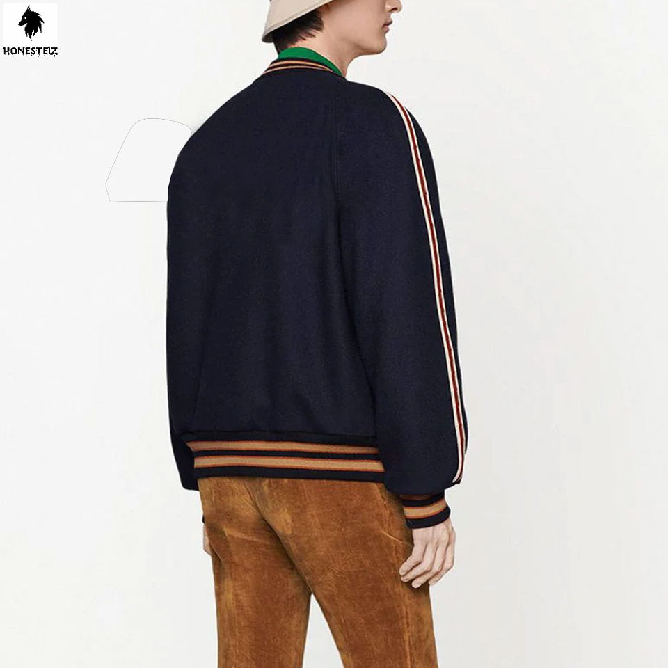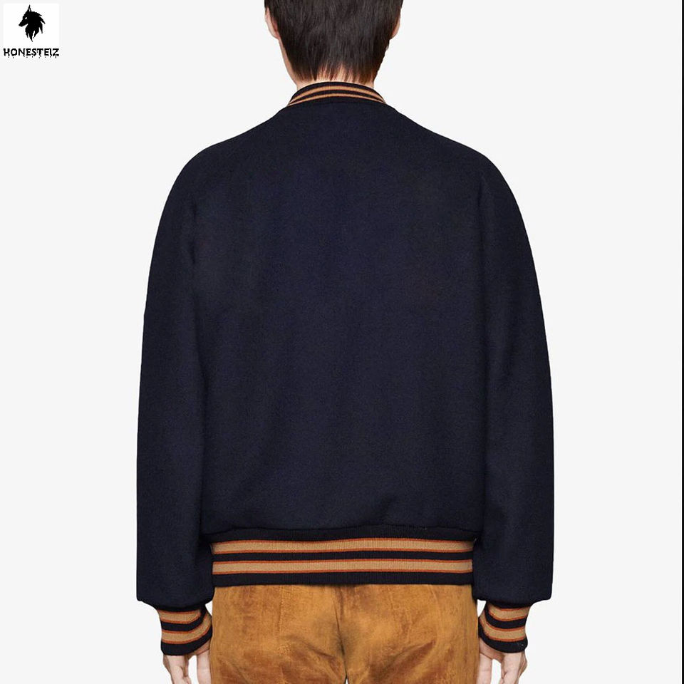 Chaqueta universitaria de lana de alta calidad para hombre, cómoda chaqueta deportiva ligera a prueba de viento con cuello levantado y letras cálidas para invierno