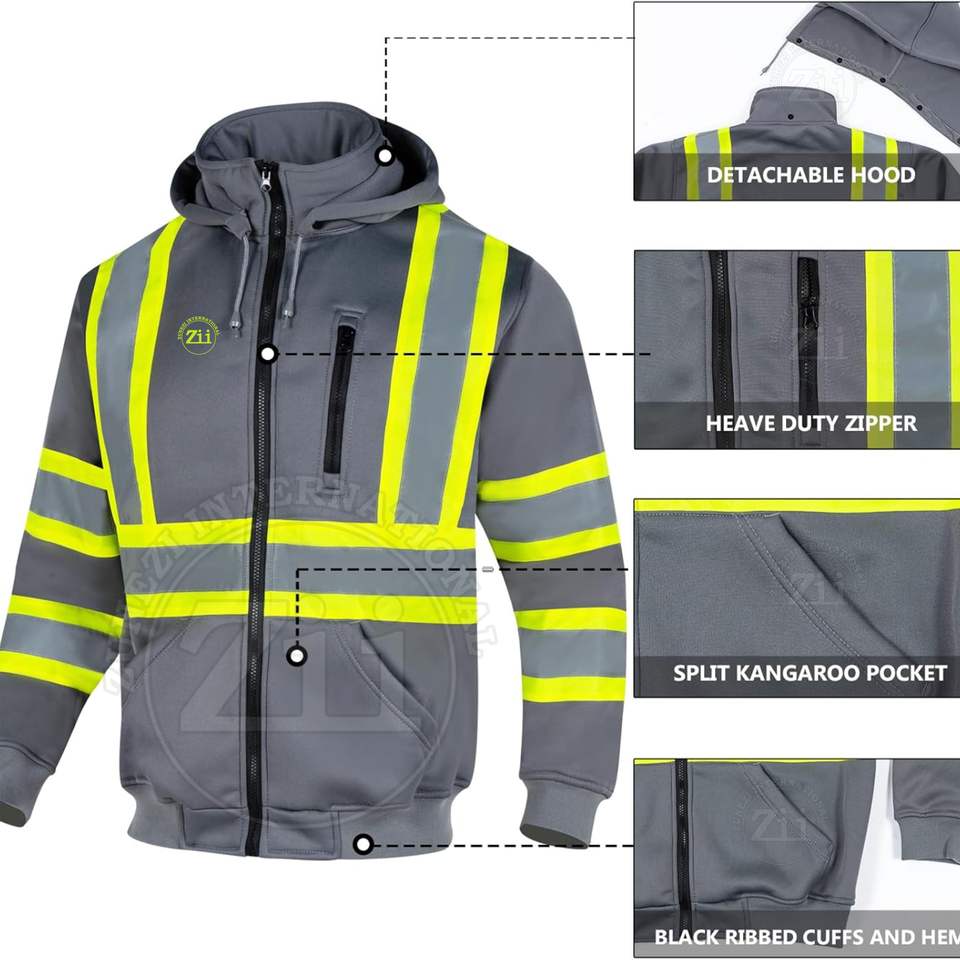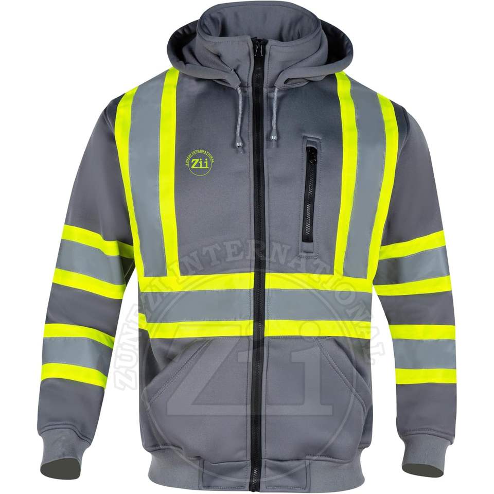 Sudadera CON CAPUCHA DE SEGURIDAD reflectante para hombre, ropa de trabajo de manga larga personalizada para trabajadores de la construcción con bolsillo con cremallera en el pecho