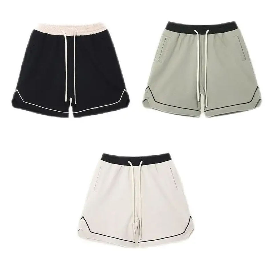 Pantalones cortos deportivos de algodón de calle alta para hombre, ropa de gimnasio de verano al por mayor, patrón estampado de secado rápido, bolsillo informal de talla grande