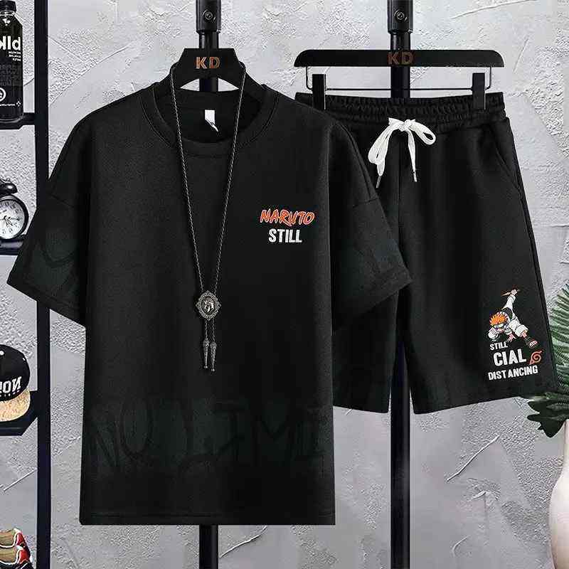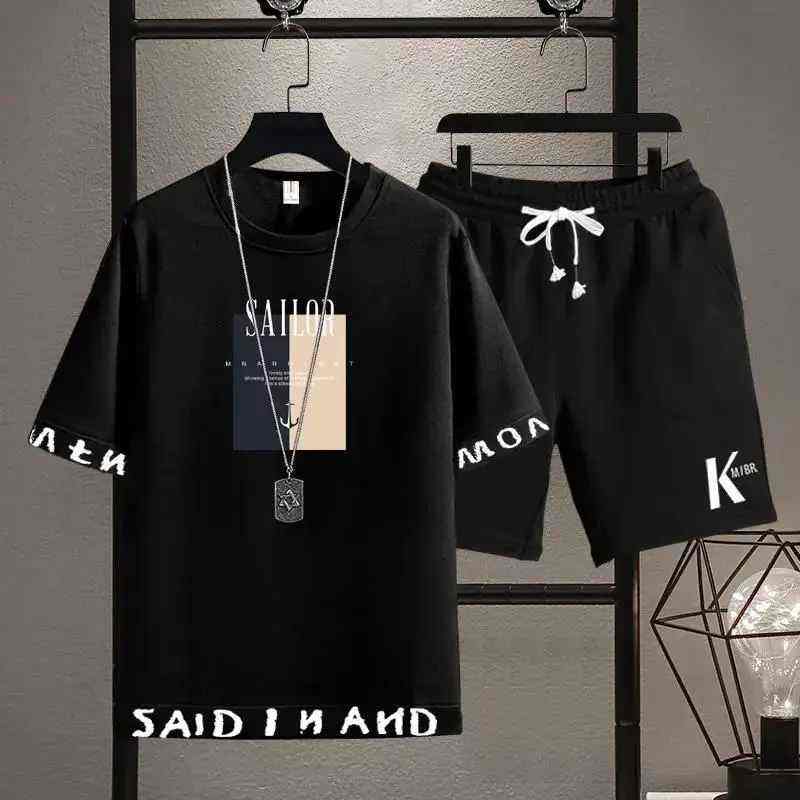 Traje de verano de dos piezas de estilo callejero para hombre, nueva camiseta de manga corta a la moda y pantalones cortos de talla grande, conjunto de pantalones para hombre
