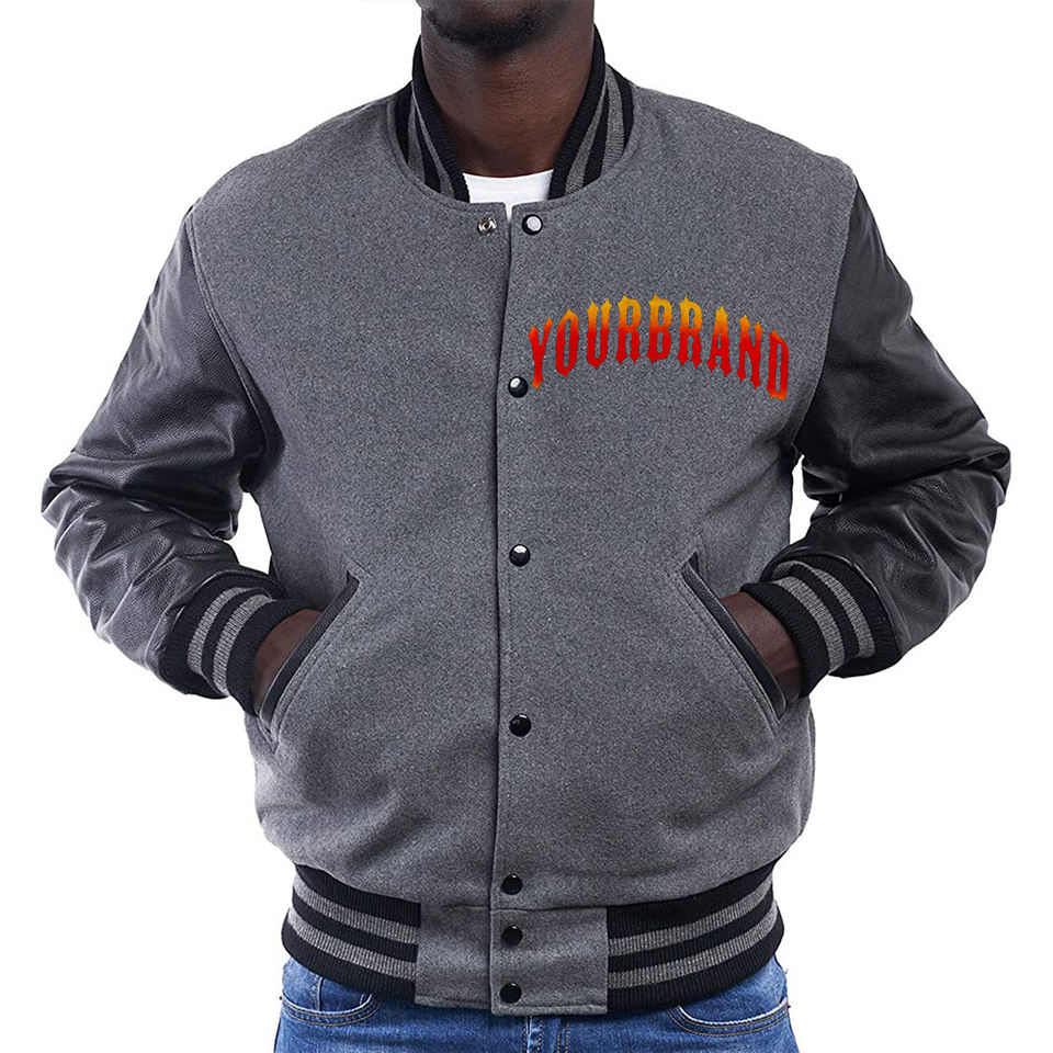 Chaqueta universitaria de invierno estilo callejero para hombre con cuerpo de lana Bordado de chenilla Logotipo personalizado en manga de cuero Diseño en blanco