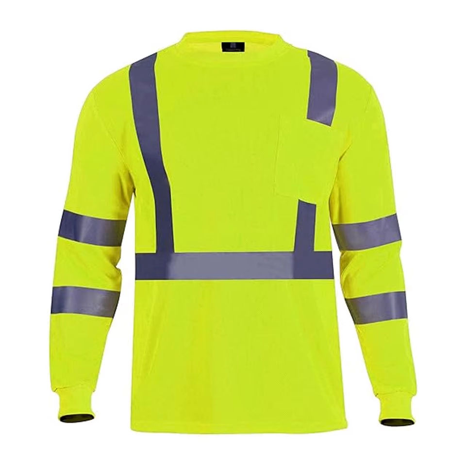 Camiseta de Trabajo de Manga Larga Reflectante de Alta Visibilidad para Hombre, Polo Amarillo de Alta Visibilidad de Poliéster, Camiseta de Trabajo de Manga Larga de Poliéster