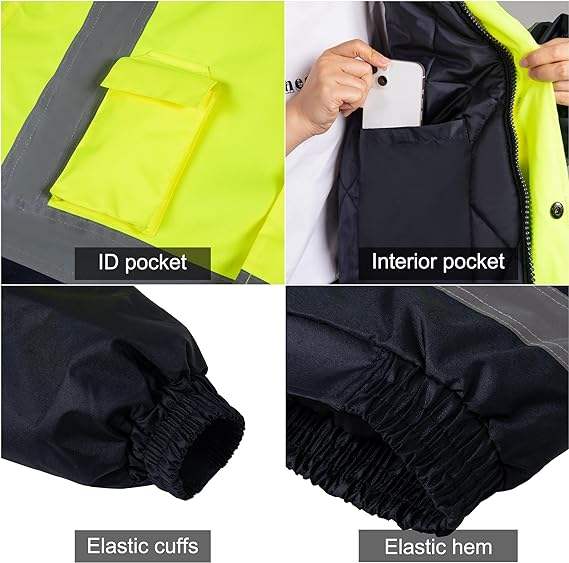 Ropa DE SEGURIDAD reflectante de alta visibilidad para hombre, ropa de trabajo, chaqueta de seguridad de invierno, cuello levantado, chaqueta Parka de seguridad vial