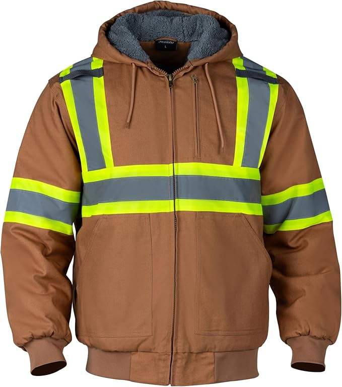 Chaqueta de trabajo de alta visibilidad para hombre, chaqueta de lona impermeable reflectante con forro de Cachemira