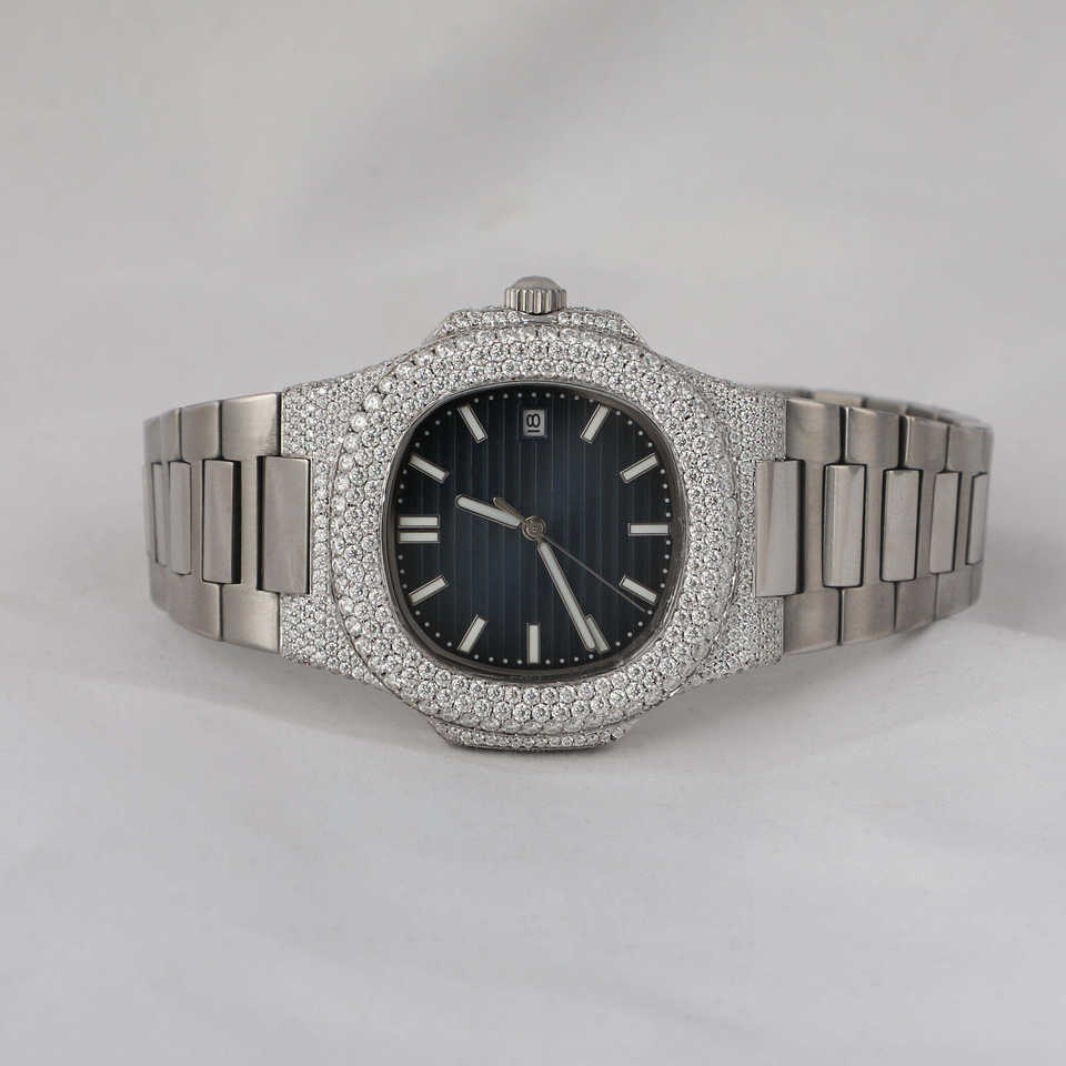Reloj Analógico para Hombre, Estilo Hip Hop, Correa de Cuero y Acero Inoxidable, Resistente al Agua, con Detalles de Diamantes y Esfera de Cristal