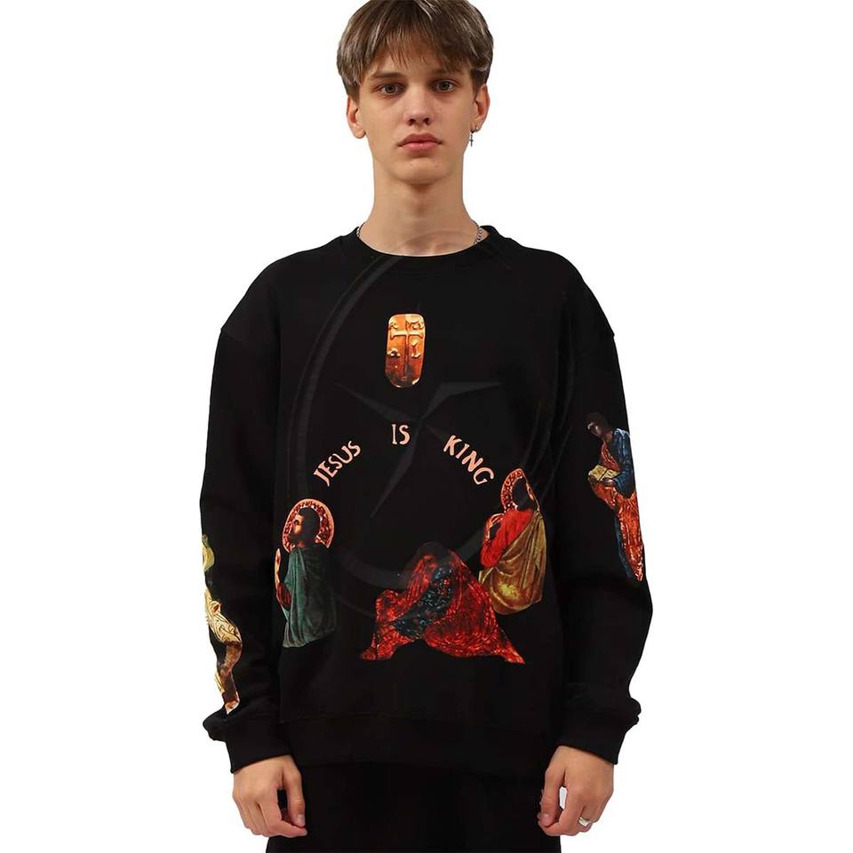 Sudaderas de Hip Hop para hombre Jesus is King Chicago Sudadera térmica transpirable Sudadera con estampado gráfico Sudadera con capucha de manga larga Negro