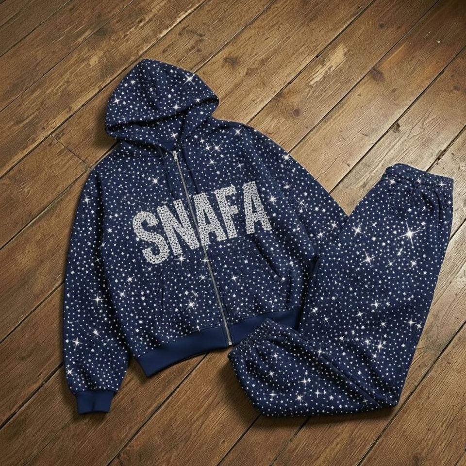 Conjunto Deportivo con Capucha y Pedrería para Hombre, Conjunto Deportivo con Logotipo Personalizado y Pedrería, Nuevo Conjunto Deportivo con Pedrería