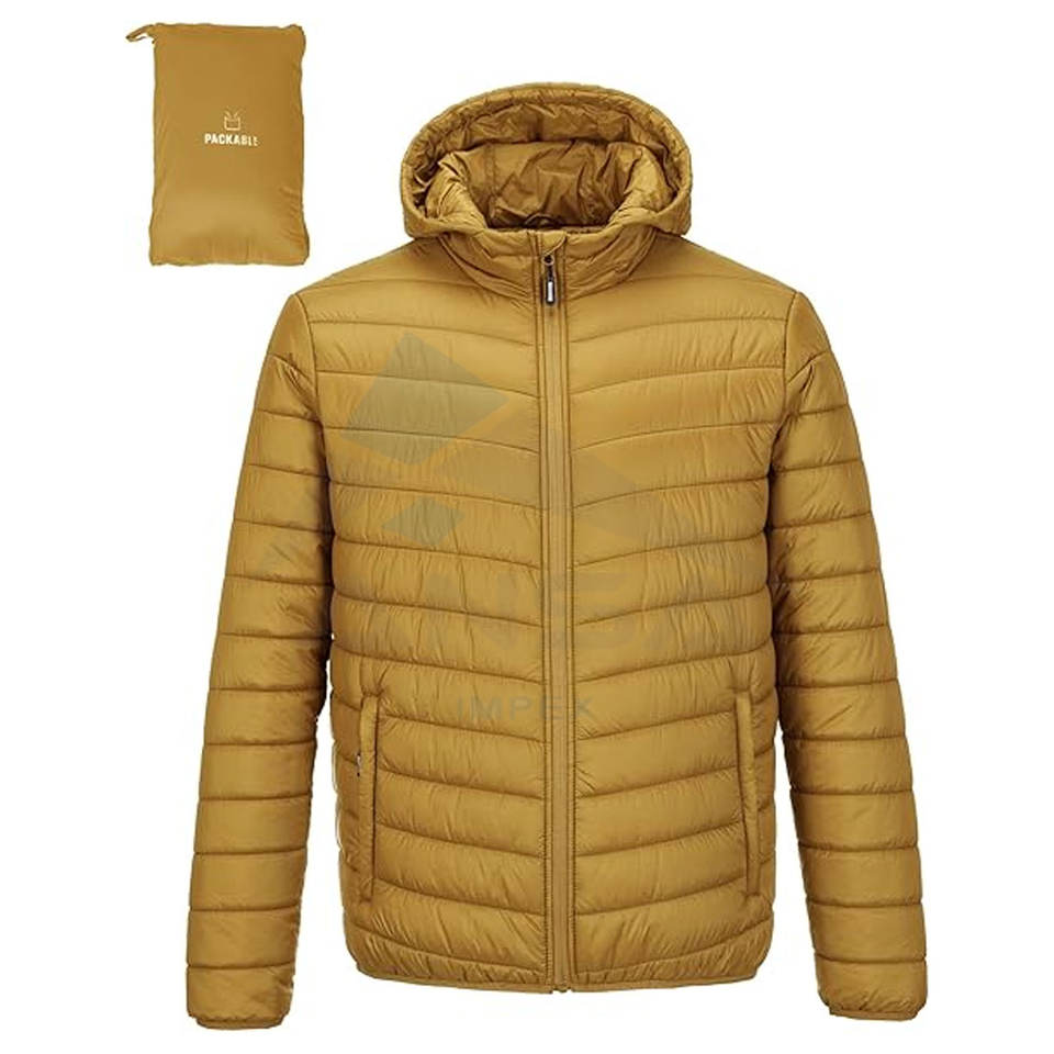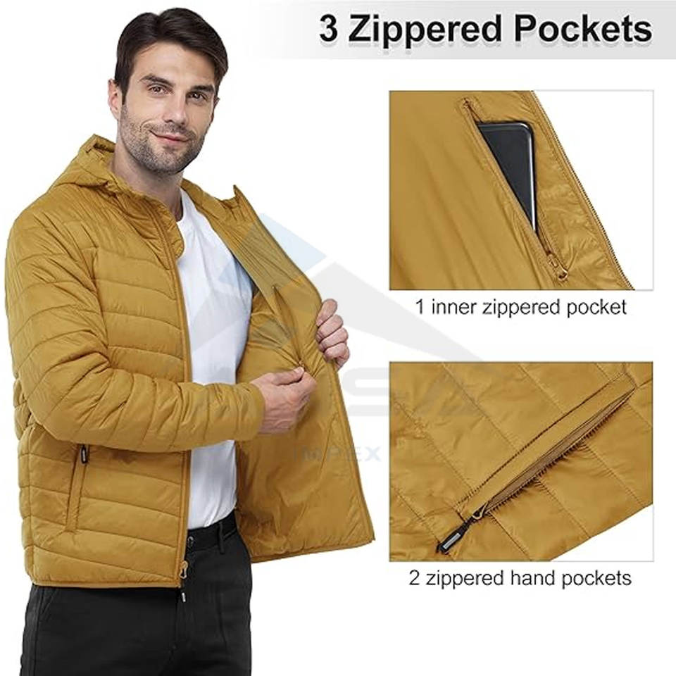 Chaqueta empacable con aislamiento para hombre, abrigo de invierno ligero e hinchado con puños elásticos, bolsillos con cremallera, marca OEM