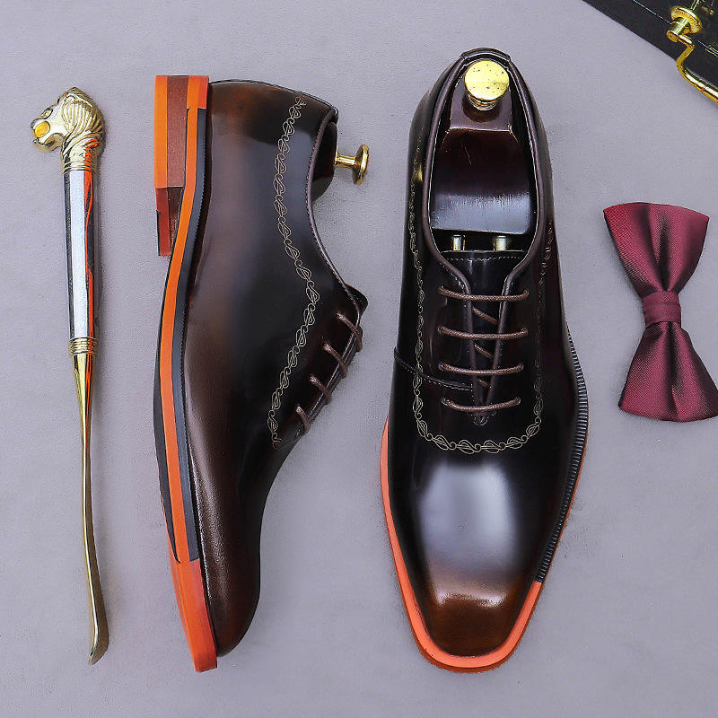 Zapatos de Vestir Formales de Estilo Italiano para Hombre, con Punta Cuadrada, Antideslizantes, Transpirables, Ligeros, con Parches, con Cordones, Hechos a Mano