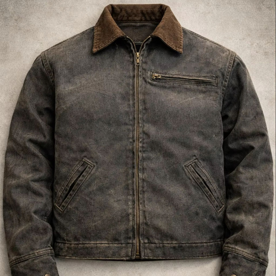 Chaqueta de Trabajo para Hombre, Estilo Vintage, Lavada, de Lona de Pato, Chaqueta Utilitaria con Cierre, Estilo Detroit