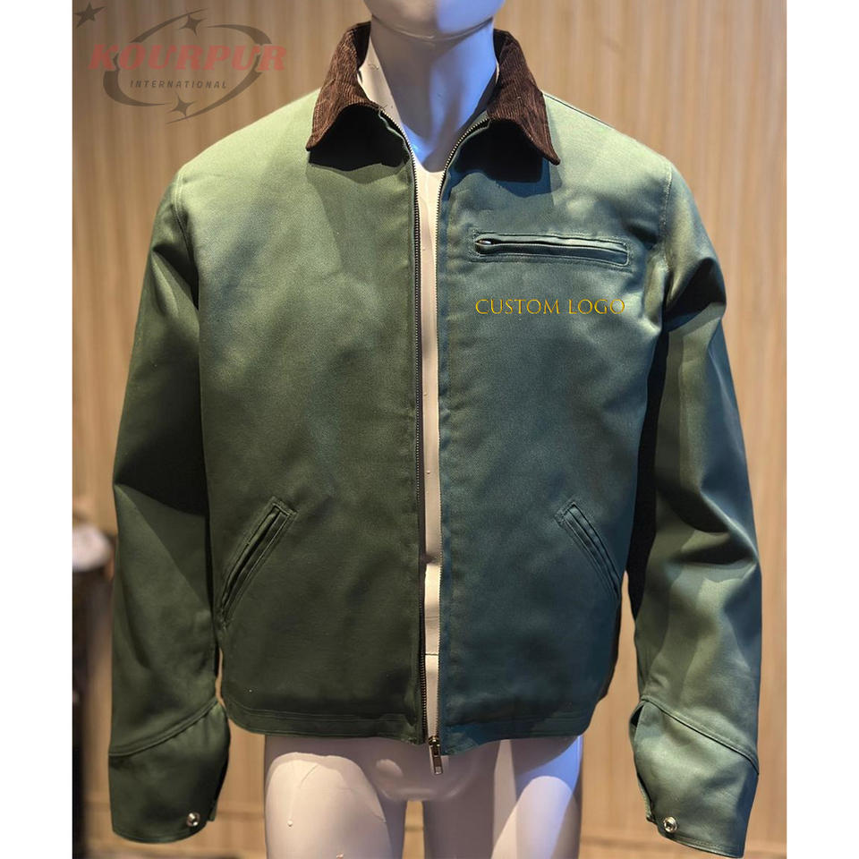 Chaqueta Bomber de Lona para Hombre con Cuello Alto, Cierre de Cremallera, Resistente al Viento, Logotipo Personalizado, Marca Privada, Peso Pesado