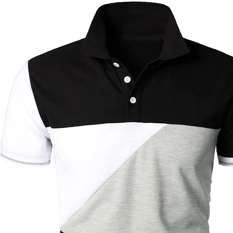 Polos de punto para hombre, manga corta, estilo a rayas, dos tonos, polo de color, camisas de golf informales a la moda