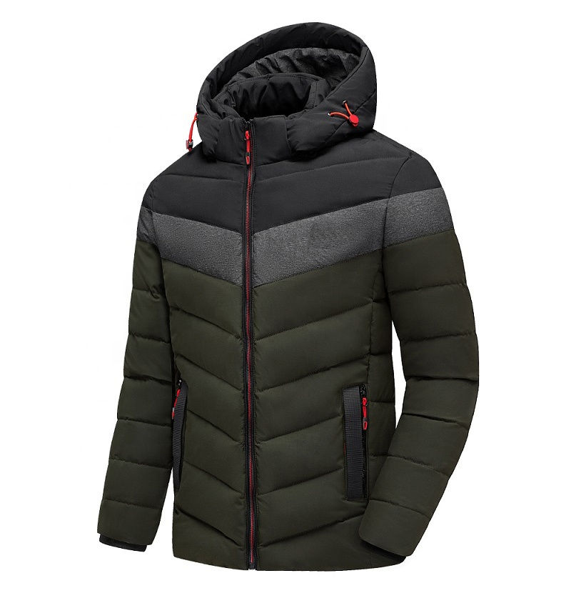 Último diseño para hombre 100% poliéster acolchado al aire libre chaqueta con capucha soporte tres tonos impermeable invierno Puffer algodón acolchado soporte