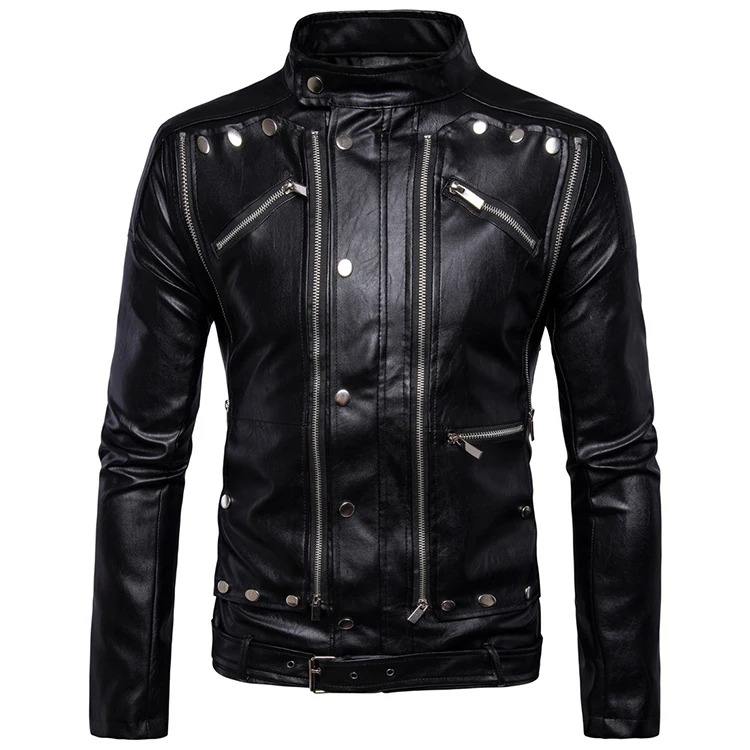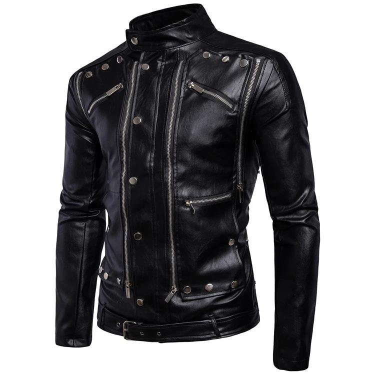 Chaqueta de cuero para hombre con muchas cremalleras, abrigo de cuero para hombre, chaqueta de cuero para motorista, chaqueta para motocicleta, chaqueta para hombre