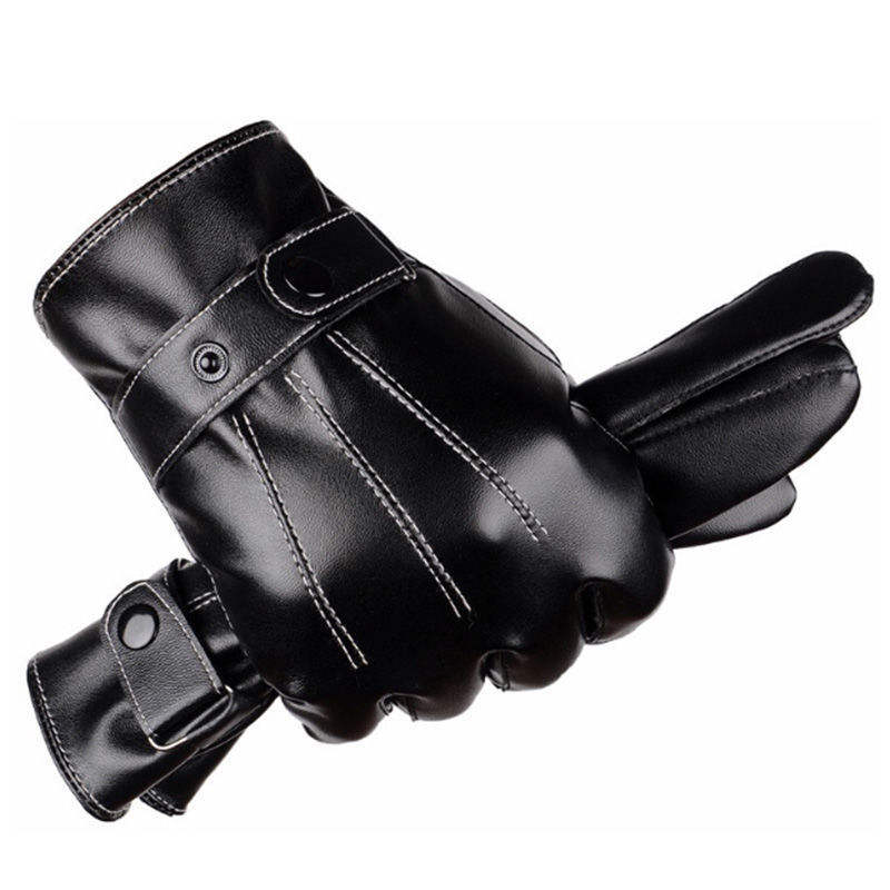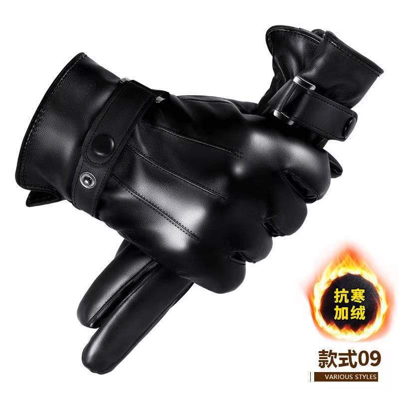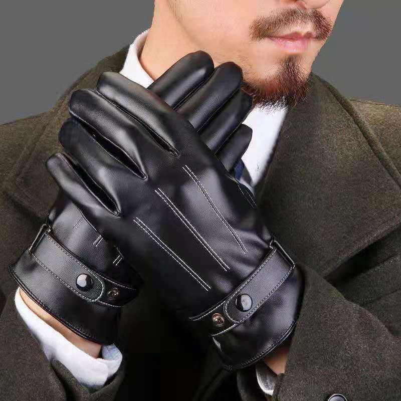 Guantes de cuero para hombre, forrados de lana, con aislamiento térmico, para motocicleta, bicicleta, uso en invierno al aire libre