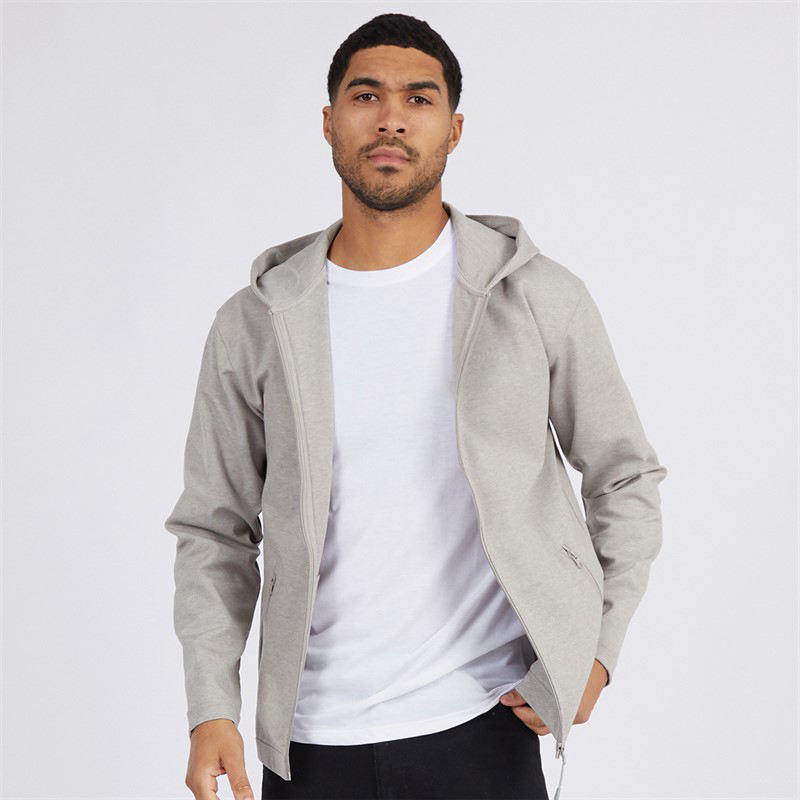 Sudadera con capucha con cremallera gris claro para hombre, tela suave y Capucha ajustable para estilo informal, técnica lavada para uso diario cómodo