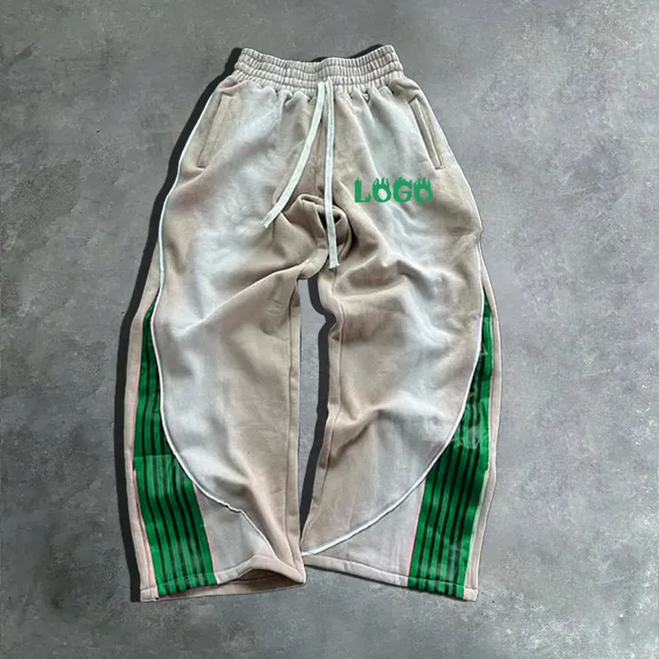 Pantalones de chándal de algodón de pierna ancha holgados ligeros de gran tamaño para hombre, ropa de calle con logotipo personalizado, lavado ácido, cintura elástica, deportes transpirables