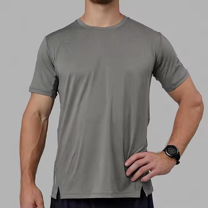 Camiseta Deportiva Ligera de Malla para Hombre, para Gimnasio, Correr, Entrenamiento, con Cuello Redondo, Lisa, de Manga Corta