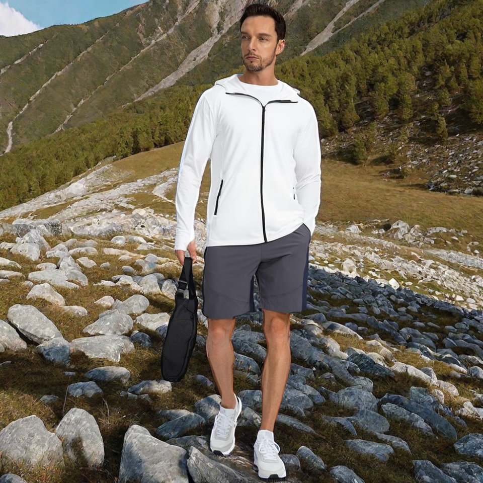 Chaqueta con capucha Softshell ligera para hombre, resistente a la intemperie, cremallera, protección UV, uso durante todo el año, tela duradera para una primavera resistente