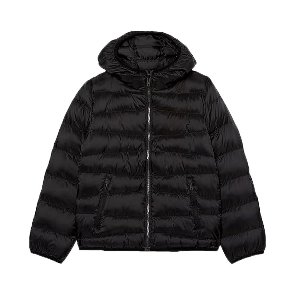 Chaqueta acolchada impermeable ligera para hombre, novedad con embalaje personalizado, cuello con capucha de último estilo