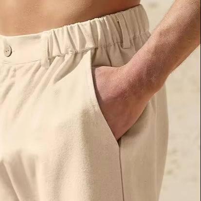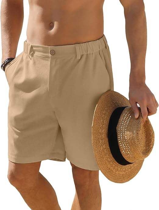 Pantalones cortos de lona de lino para hombre, informal, con cierre de botones, cremallera, elástico, cintura media, verano, Vacaciones en la playa, patrón sólido, multibolsillo