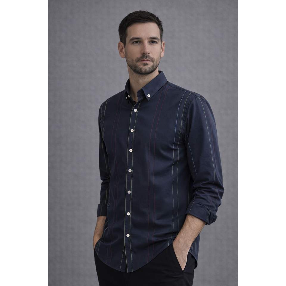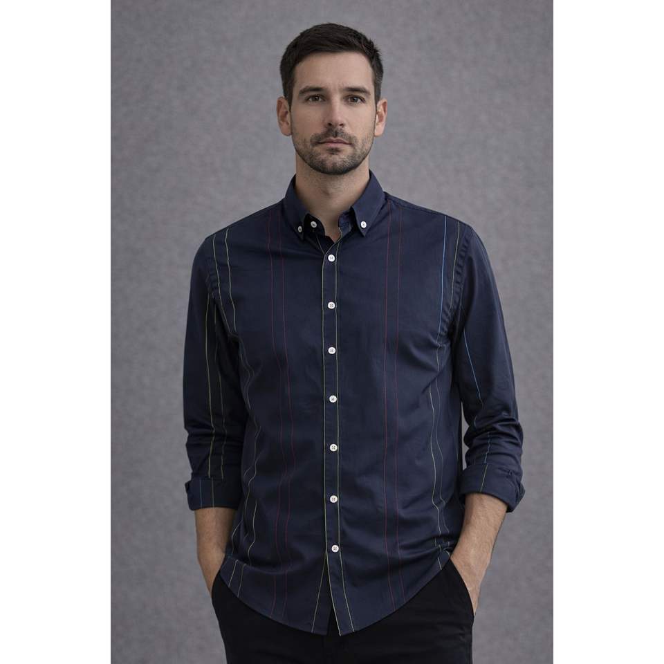 Camisa de manga larga para hombre con detalles de rayas multicolores