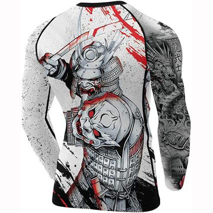 Camisetas de Compresión de Manga Larga de Secado Rápido para Hombre para BJJ MMA Entrenamiento Gimnasio-Spandex/Nailon Impresión por Sublimación de Alto Gramaje