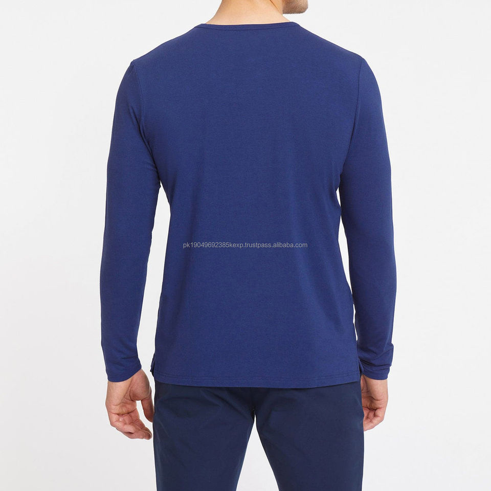 Camisetas Térmicas de Manga Larga para Hombre, Color Sólido, 100% Algodón, Tejido de Punto, Transpirables, de Secado Rápido, Ecológicas, 220g, Cuello Redondo, Deportivas