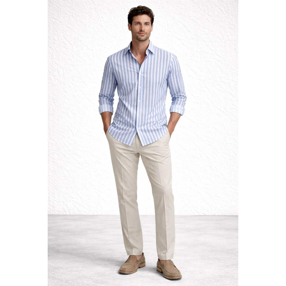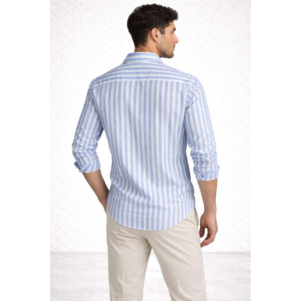 Camisa de rayas verticales de manga larga para hombre