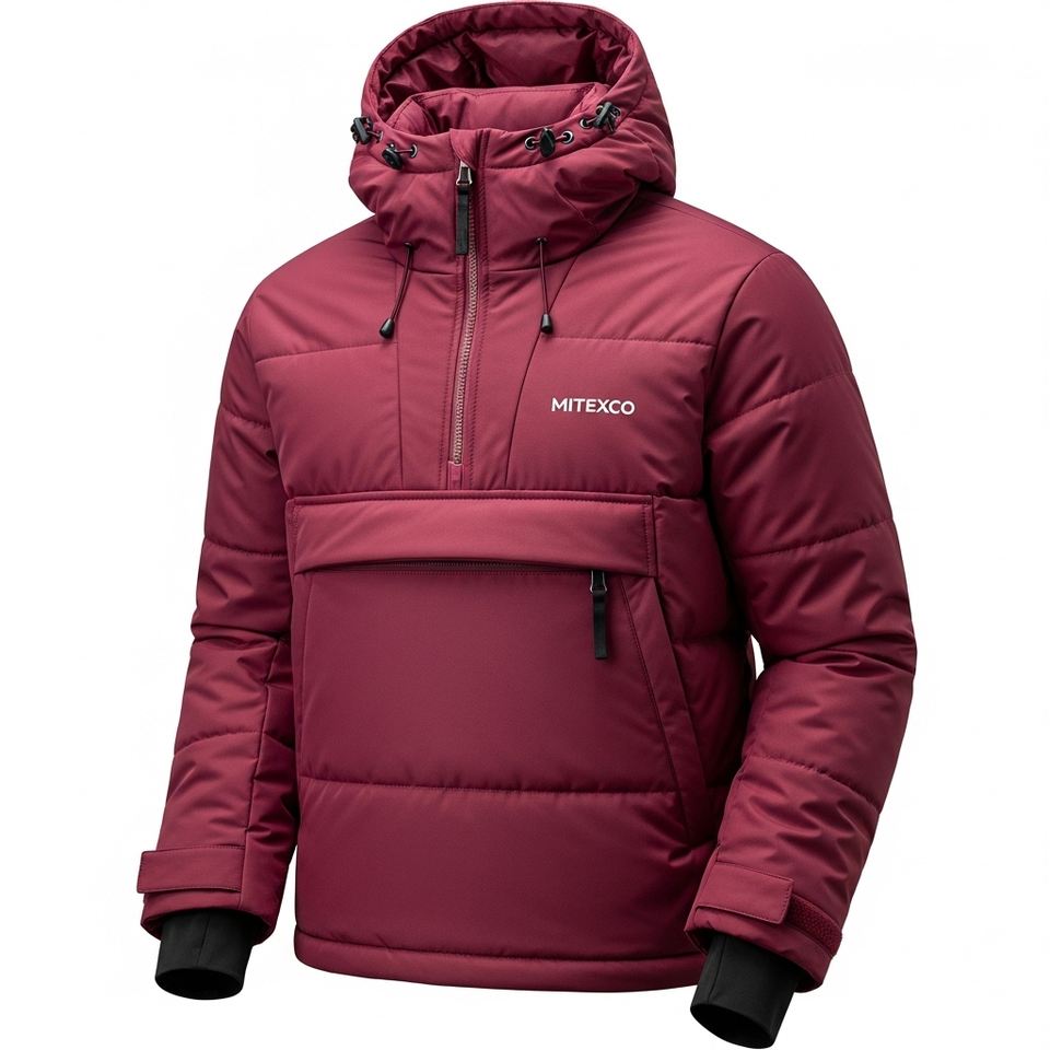 Chaqueta Anorak Acolchada con Capucha para Hombre MITEXCO para Exteriores | Chaqueta de Esquí y Snowboard de Invierno con Media Cremallera, Impermeable y Cálida | Logotipo Personalizado Disponible