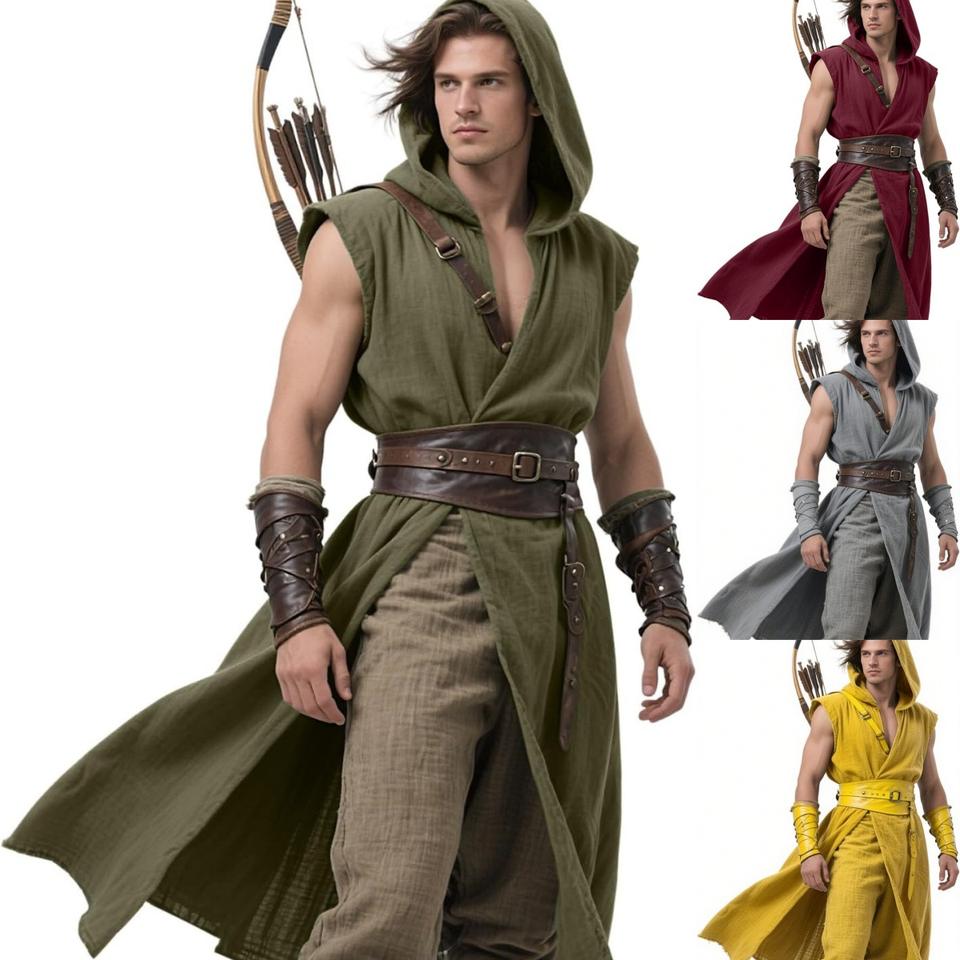 Capa Medieval con Capucha para Hombre, Túnica sin Mangas Estilo Renacentista, Disfraz Vikingo, Cosplay de Asesino