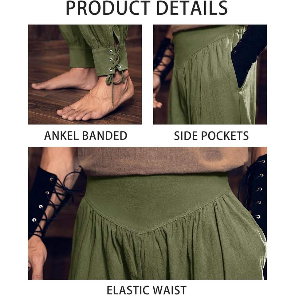 Pantalones de tobillo de pirata medieval para hombre, traje renacentista Vikingo, pantalones de navegador con bandas cónicas de encaje, deportivos antiarrugas XL 5XL