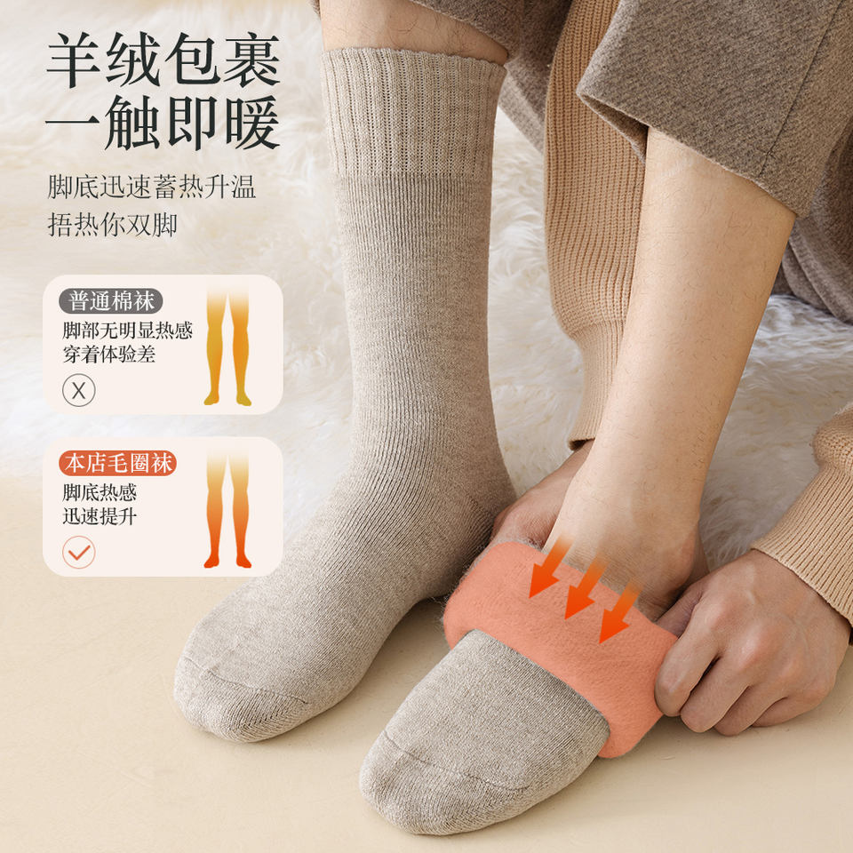 Calcetines de Lana Merino Estándar para Hombre, Negros, Sólidos, Suaves al Tacto, Diseño de Tubo Medio, Invierno, Negocios, Logotipo Personalizado
