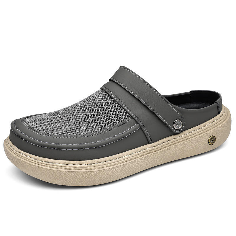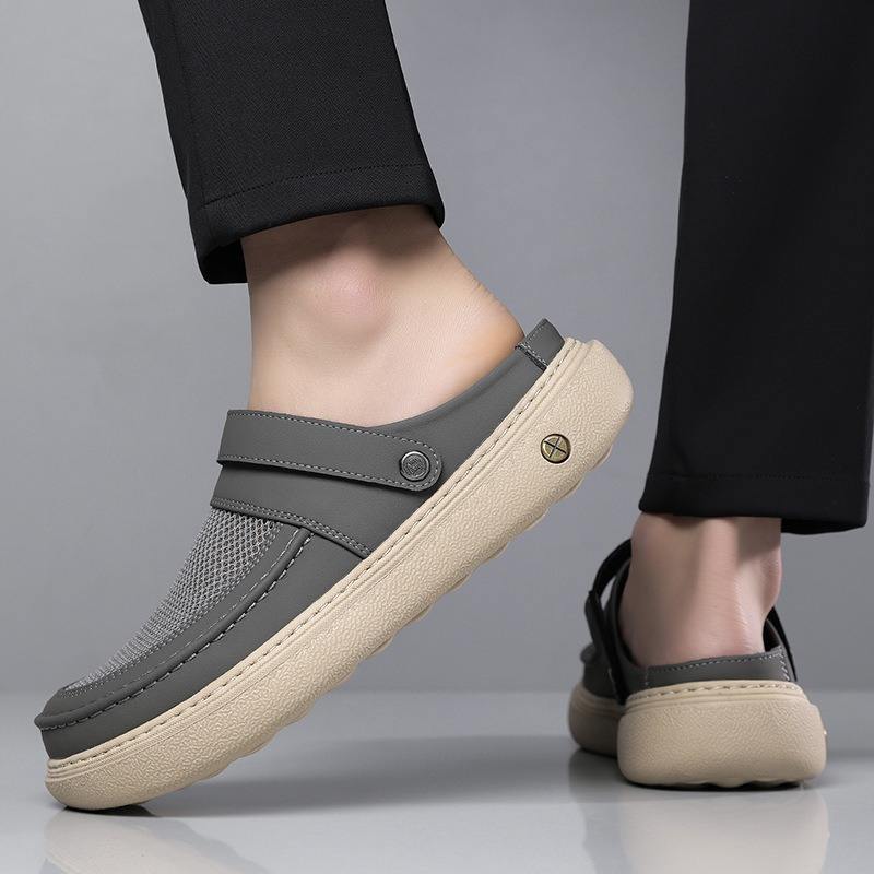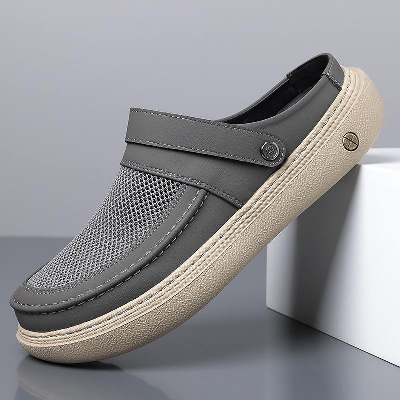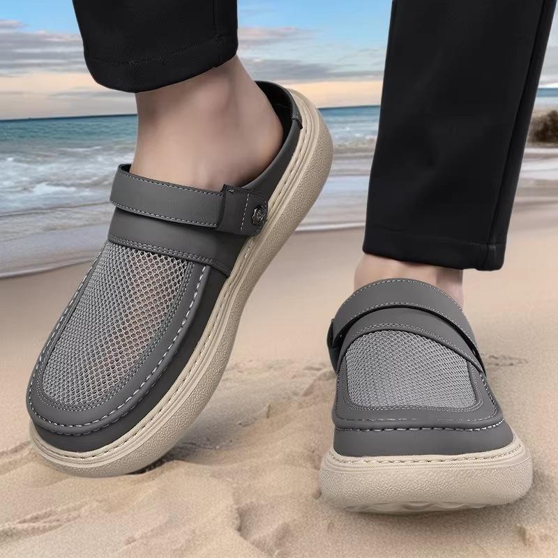 Zuecos de malla para hombre, color gris, transpirables, ligeros, con suela gruesa, fáciles de poner, informales, para la playa