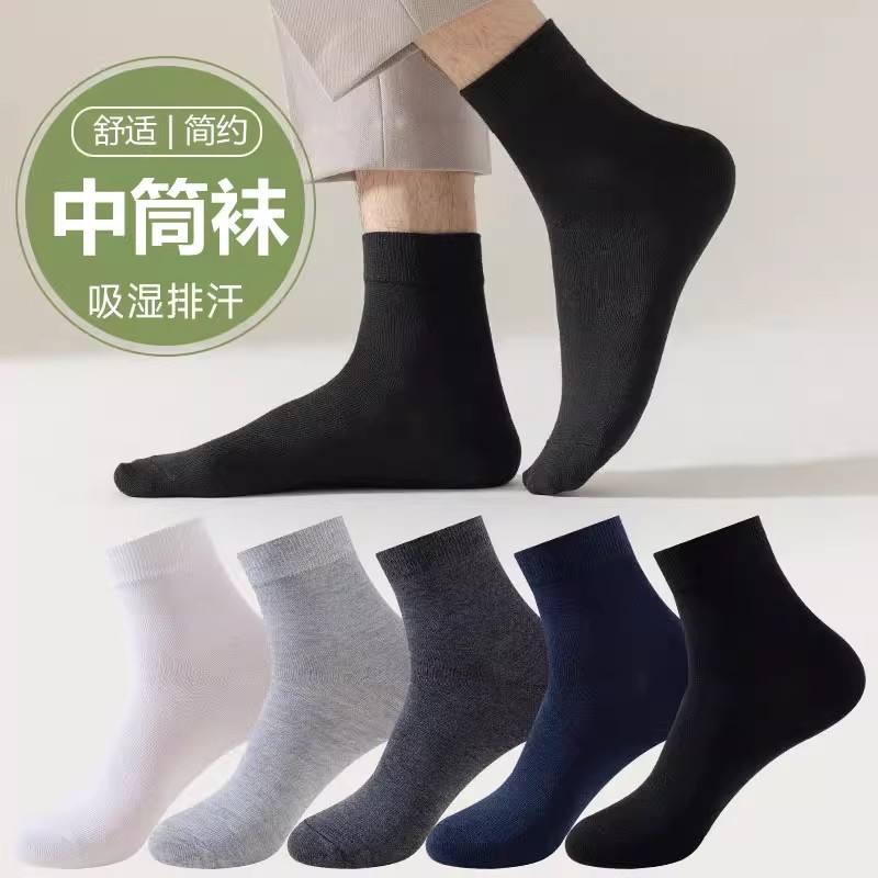Men's Mid-Calf Socks Solid Color Moisture-Wicking Antibacterial Business Casual Comfortable Medium Thickness