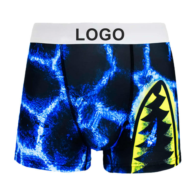 Calzoncillos bóxer de punto para hombre, de tiro medio, con logo en la cintura, de seda de leche, estampados digitalmente, transpirables, que absorben la humedad, informales, ropa interior ET