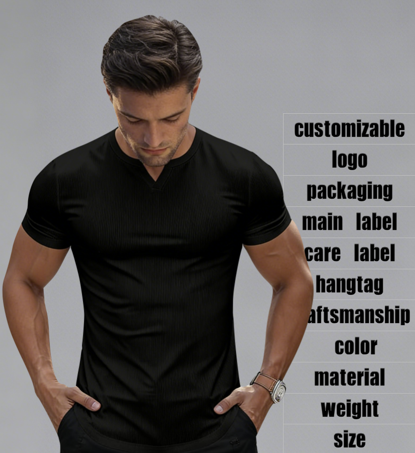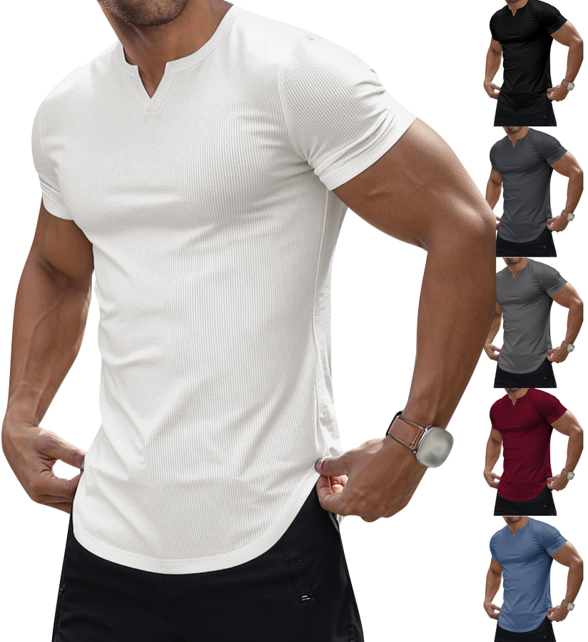Camiseta deportiva de manga corta con cuello en V y canalé para hombre, estilo Henley, para gimnasio y entrenamiento.