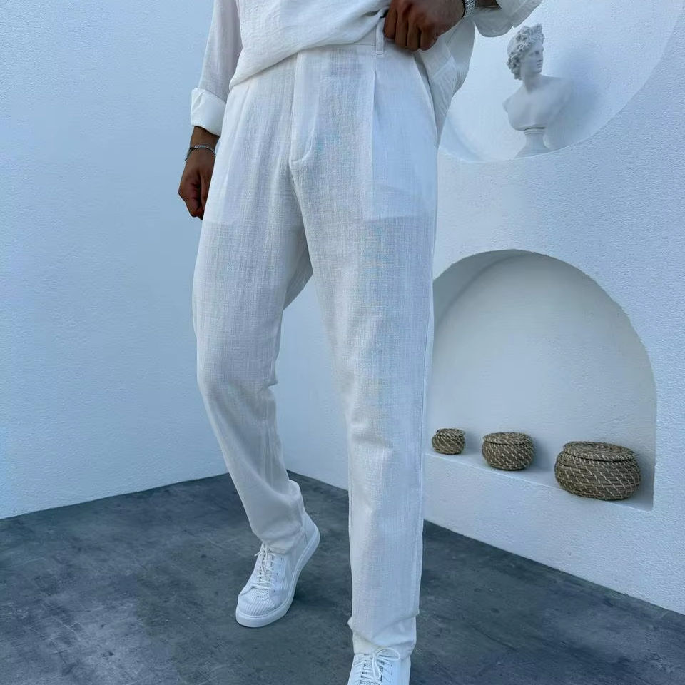 Pantalones elásticos ajustados de color azul marino para hombre, pantalones informales de oficina inteligentes, cintura elástica con cordón, algodón recto, cadera de talla grande plana
