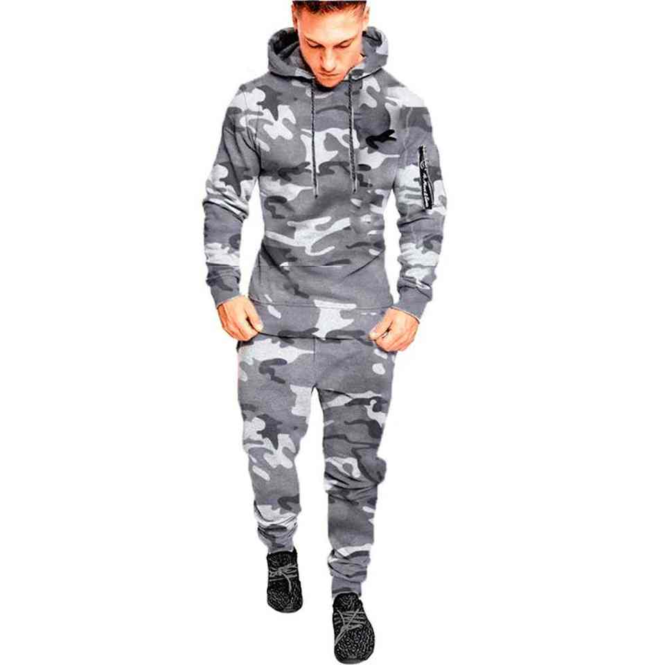 Sudadera con capucha y pantalones deportivos de patrón sólido de camuflaje para hombre, sudaderas informales para correr para deportes al aire libre para el invierno de 2017